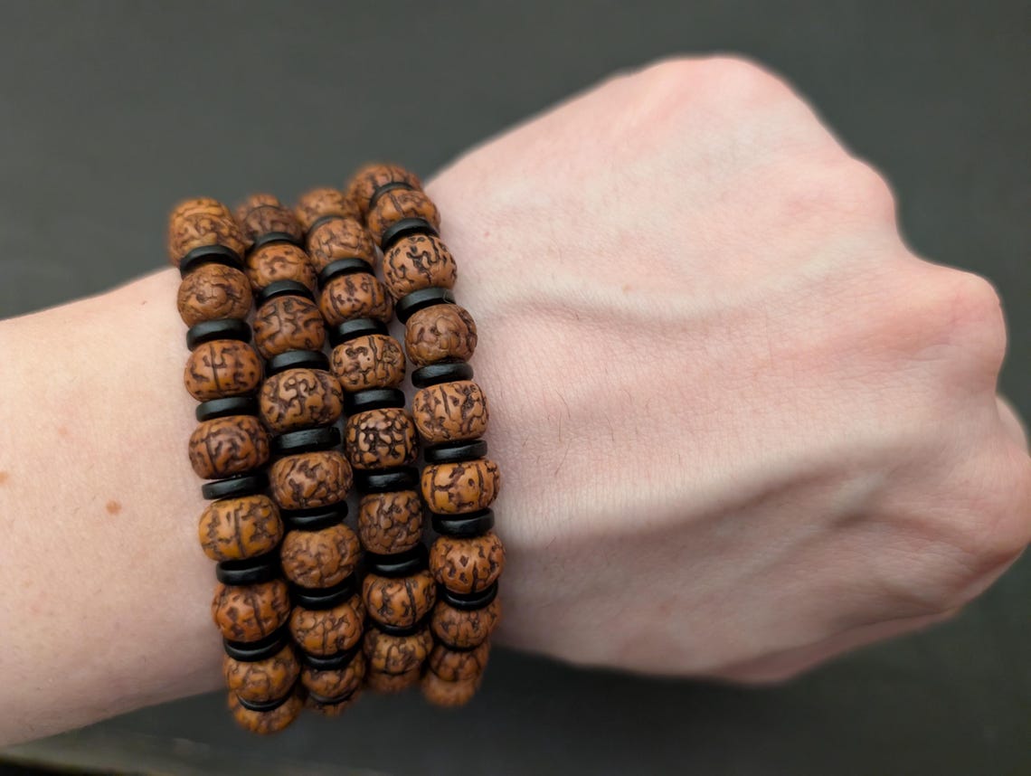 Wenn Sie Ihr Rudraksha Armband mit Ebenholz berühren, spüren Sie den Kontrast zwischen den strukturierten, heiligen Perlen und dem samtig-glatten, tiefschwarzen Edelholz. Diese harmonische Verbindung zweier kraftvoller Naturmaterialien schafft nicht nur ein ästhetisch ansprechendes Schmuckstück, sondern vereint auch ihre spirituellen Energien.